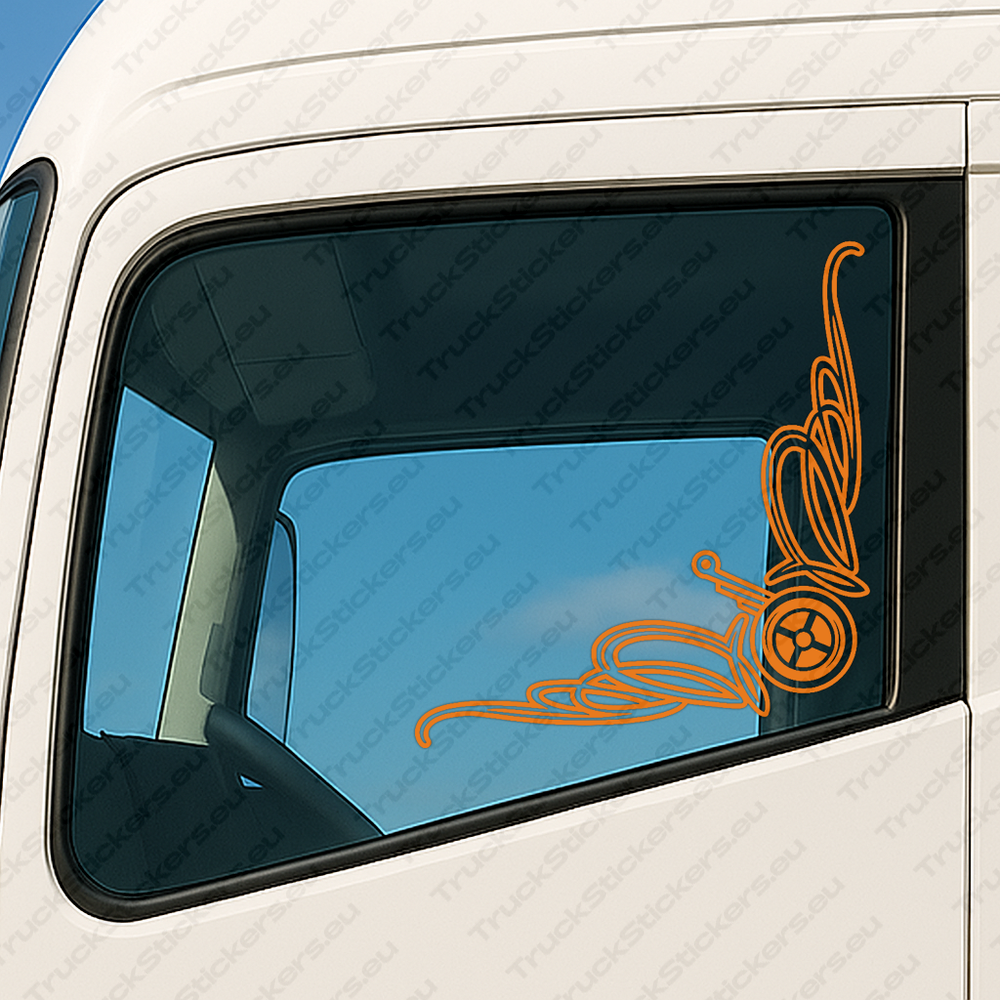 Své okenní samolepky můžete kombinovat také s našimi samolepkami na čelní sklo nebo samolepkami na karoserii, abyste vytvořili jednotný a elegantní vzhled celého vozidla. Všechny produkty jsou vyrobeny ze stejné polymerní fólie MACtac MaCal 9300, což zaručuje shodné barvy a povrchovou úpravu. Díky tomu váš kamion získá profesionální a atraktivní vzhled na silnici.