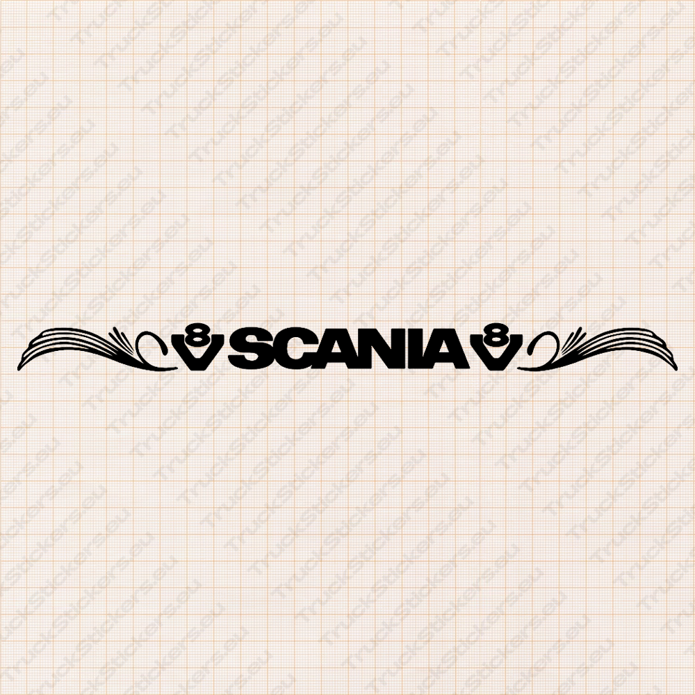 Scania Samolepka Na Čelní Sklo Kamionu 90165-1 – V8 S Tučným Textem A Zdobnými Grafikami (115X9Cm)