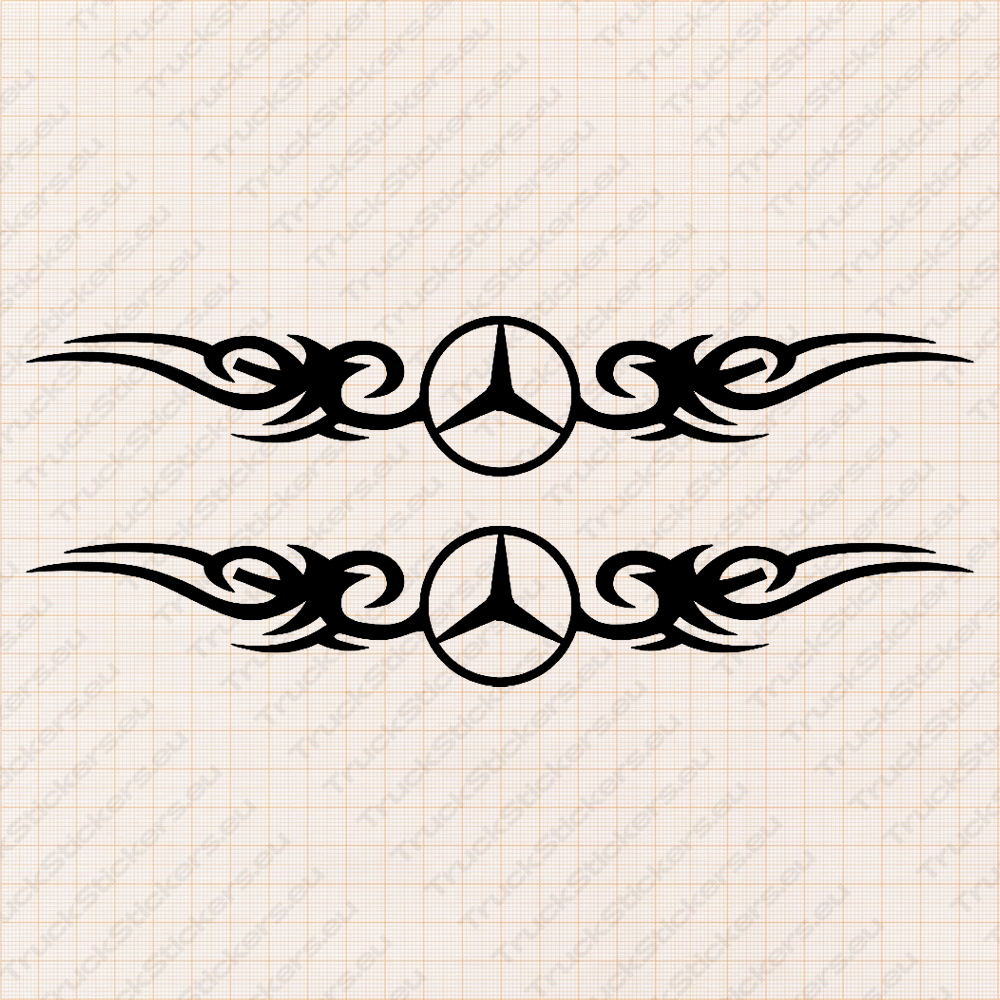 Mercedes Lastbil Vinduesklistermærker 90719 – Klassisk Logo Med Dynamisk Bølge Grafik Version 3 – Sæt Af 2
