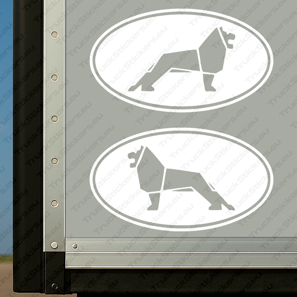Man Pegatinas para Carrocerías de Camiones 90690 – León En Negrita Dentro De Un Marco Redondo – Set de 2
