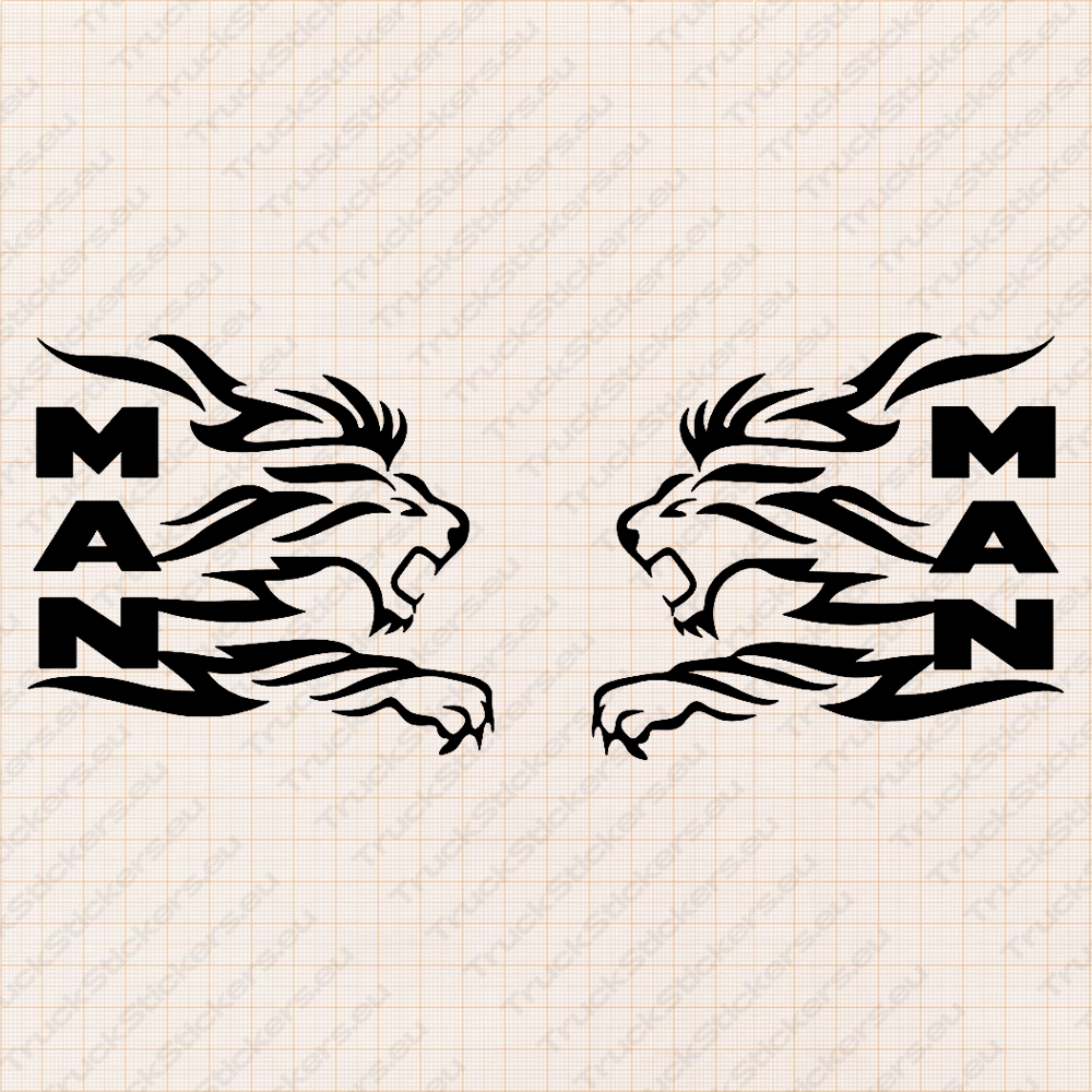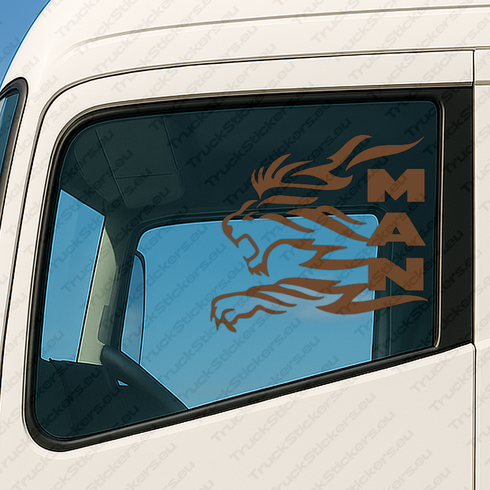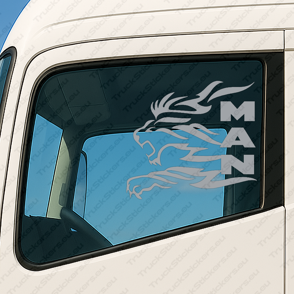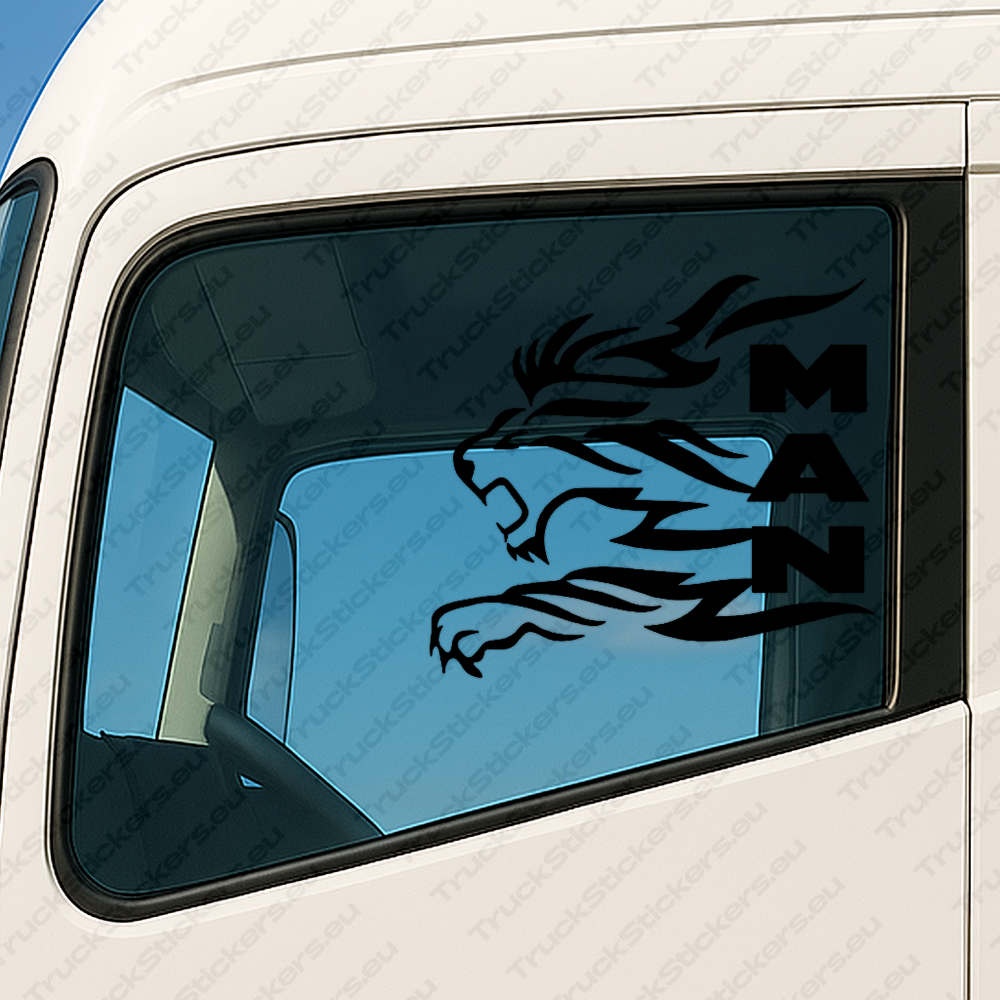 Man Pegatinas para Ventanas de Camión 90658 – Gran León Con Logo De Texto Vertical – Set de 2
