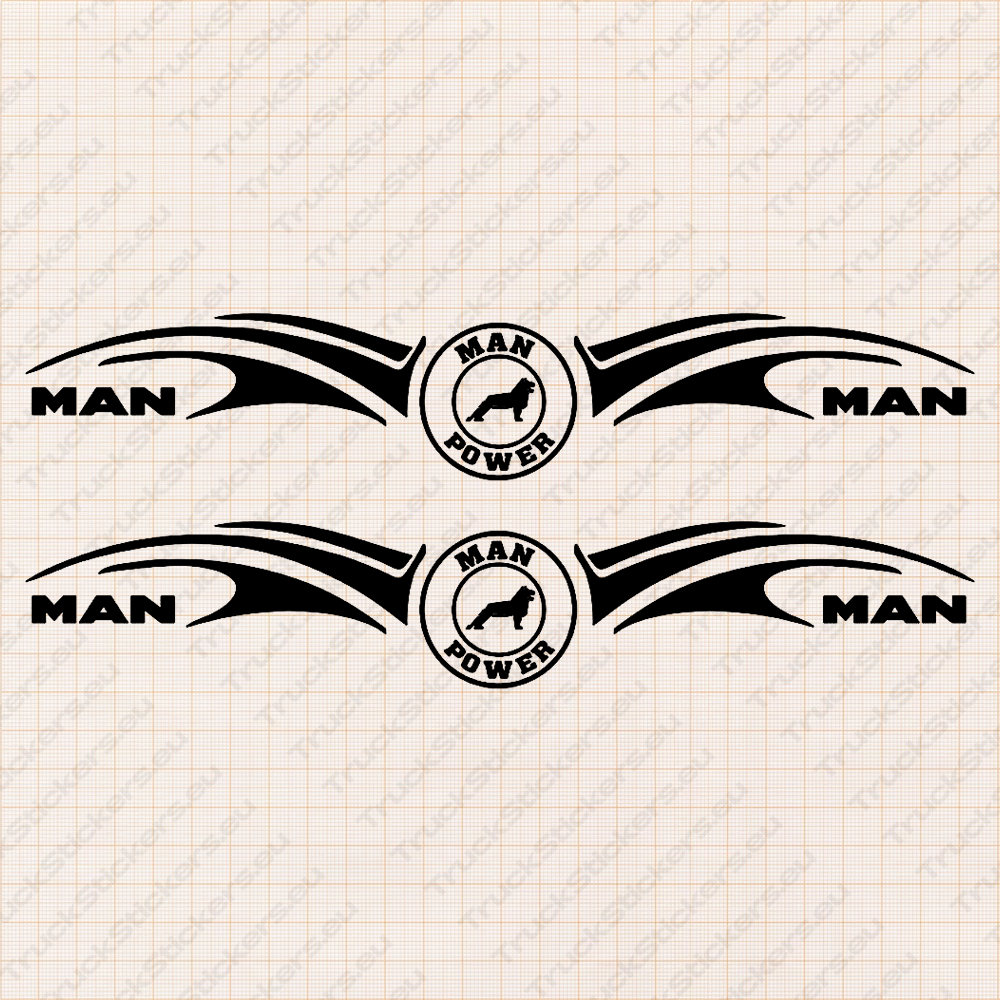 Man Pegatinas para Ventanas de Camión 90660 – Poder Con Logos De Texto Clásico Y León – Set de 2