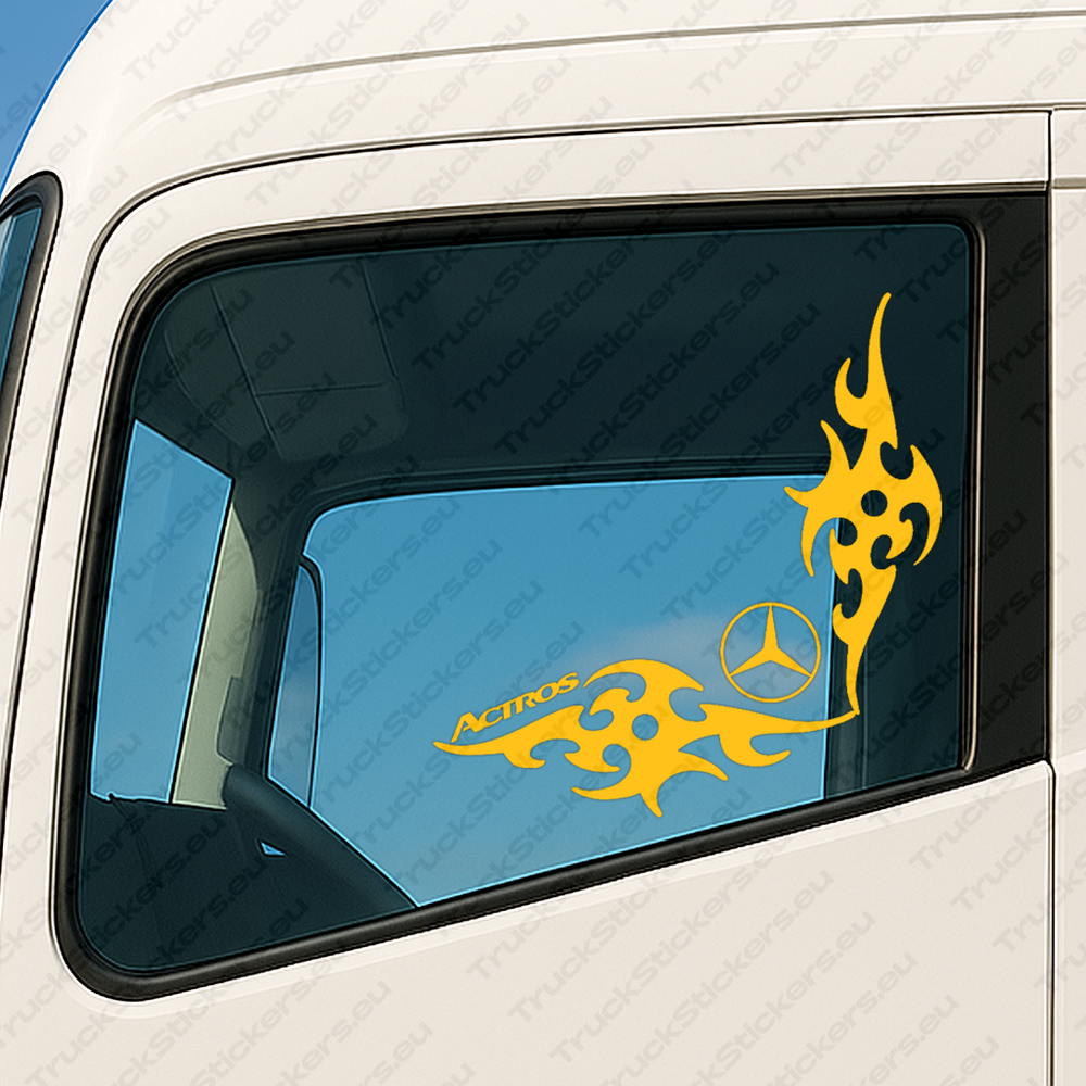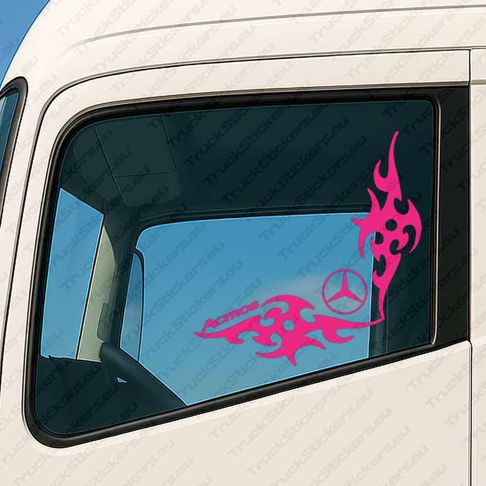 Mercedes Pegatinas para Ventanas de Camión 90753 – Actros Con Logotipo Clásico Y Gráficos De Olas Dinámicas – Set de 2
