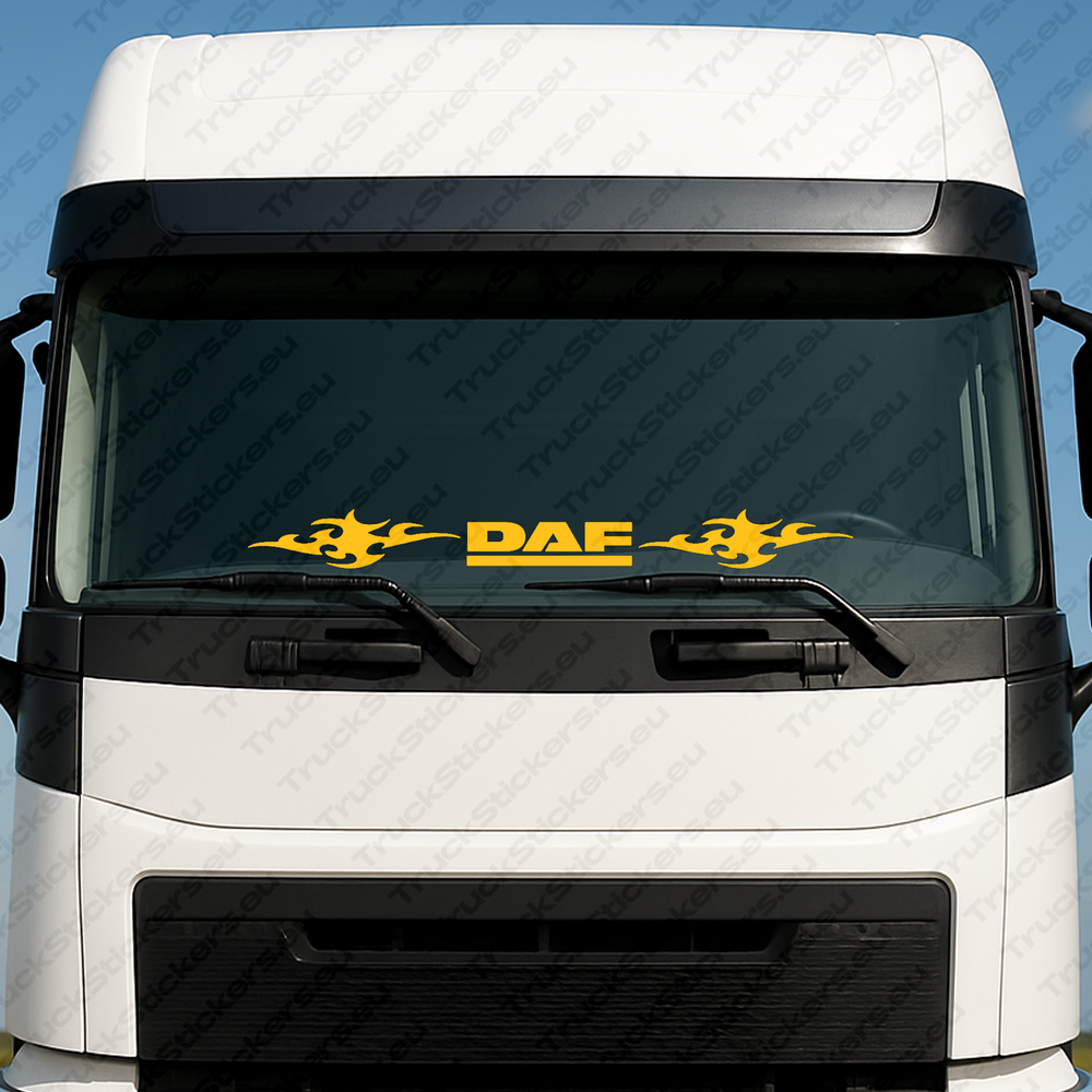 Daf Kuorma-Auton Tuulilasitarra 90600-1 – Alleviivattu Lihavoitu Teksti Logo Dynaamisilla Aalto Grafiikoilla Versio 2 (115X11cm)