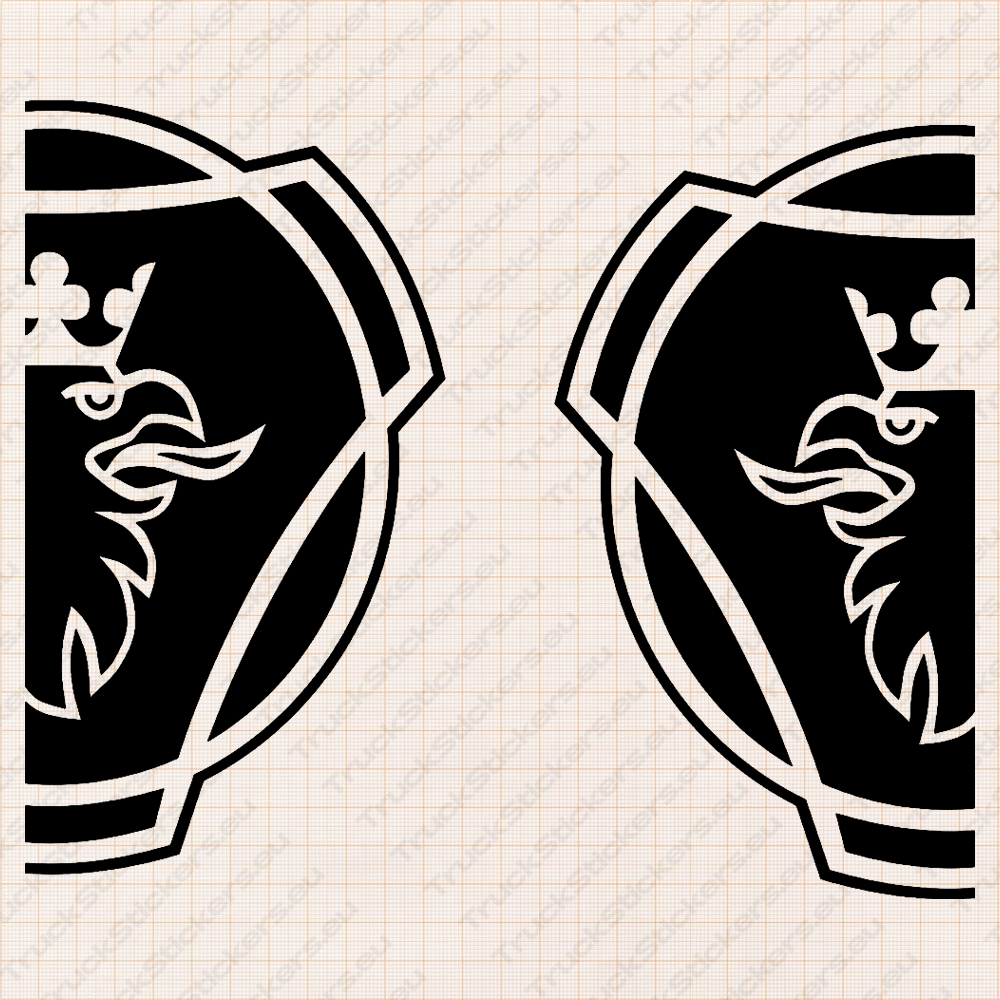 Scania Kuorma-Auton Ikkunatarrat 90195 – Puolikudos Griffineillä – 2 Kappaleen Setti