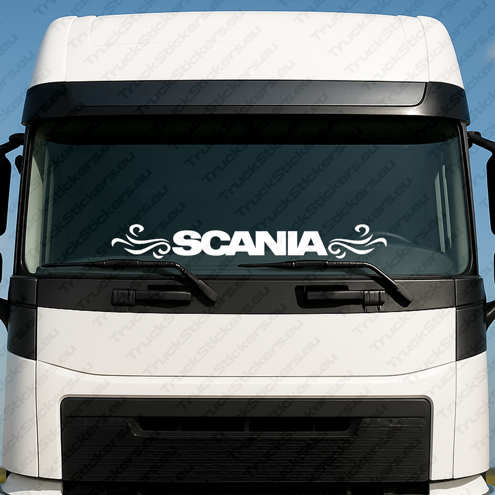 Scania Kuorma-Auton Tuulilasitarra 90168-1 – Rohkea Tekstilogo Koristegrafiikalla (115X15cm)