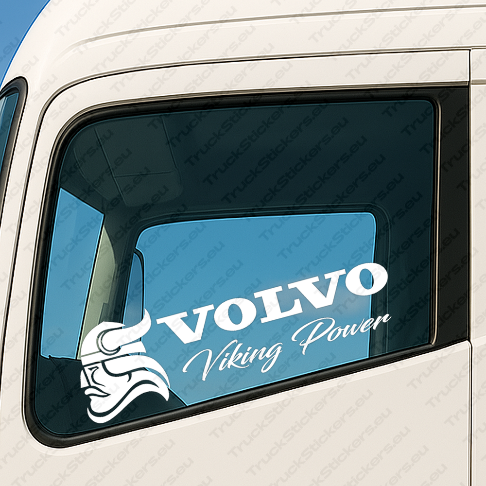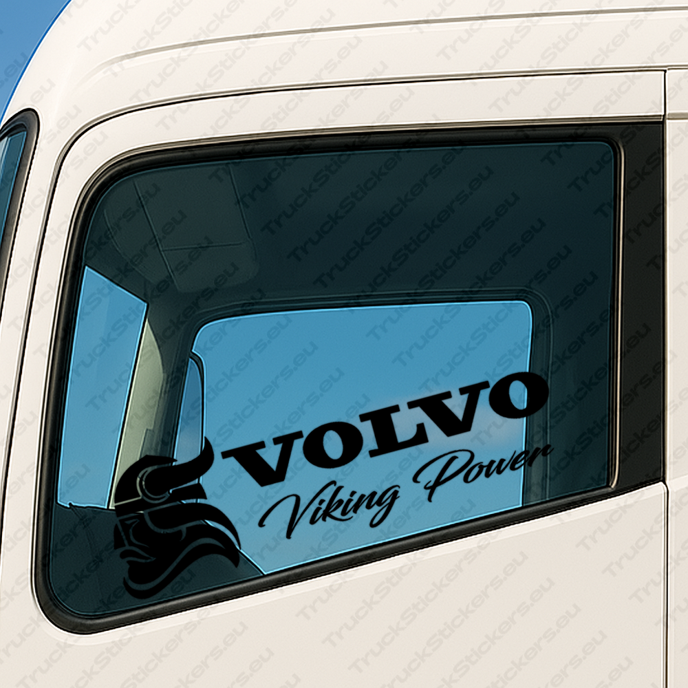 Volvo Kuorma-Auton Ikkunatarrat 90426 – Viking Power Rohkealla Tekstilogolla Ja Viikinkipää Versio 2 – 2 Kpl
