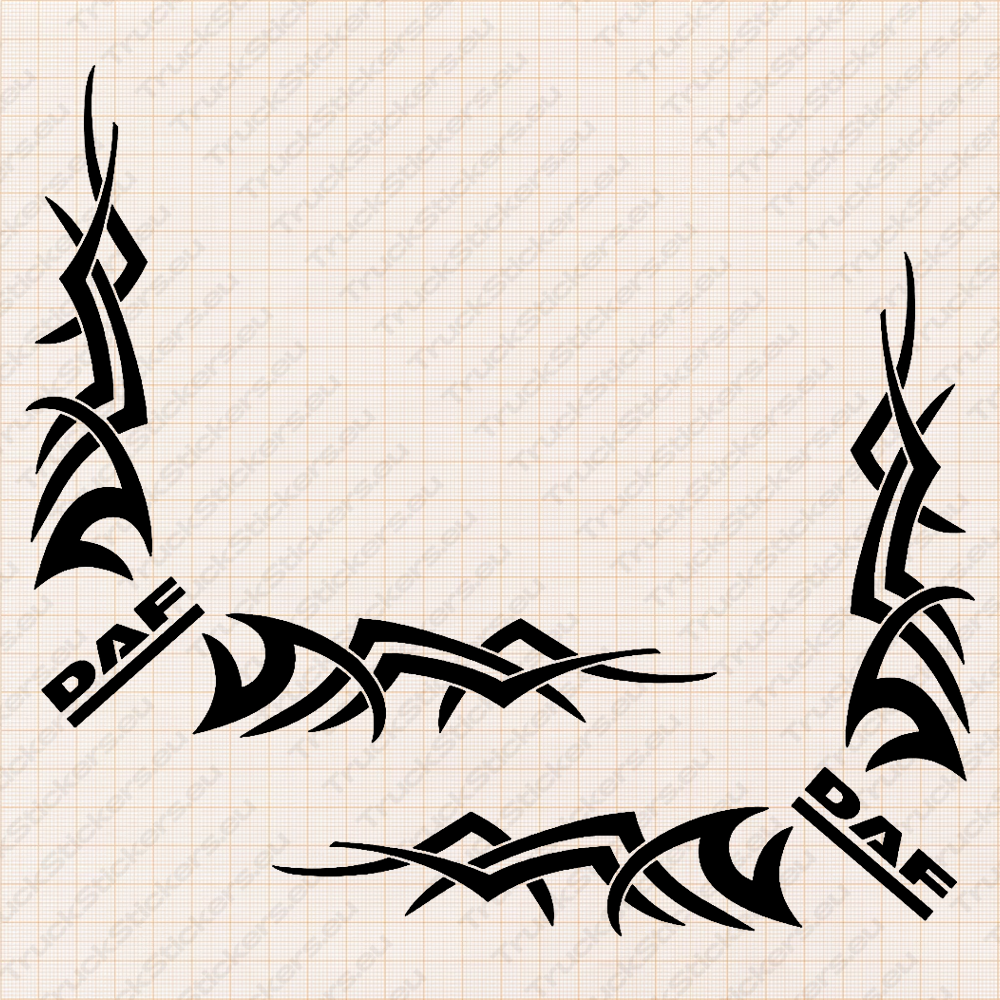 Daf Autocollants de Vitre de Camion 90613 – Logo Avec Texte Souligné Et Graphismes Tribaux – Ensemble de 2