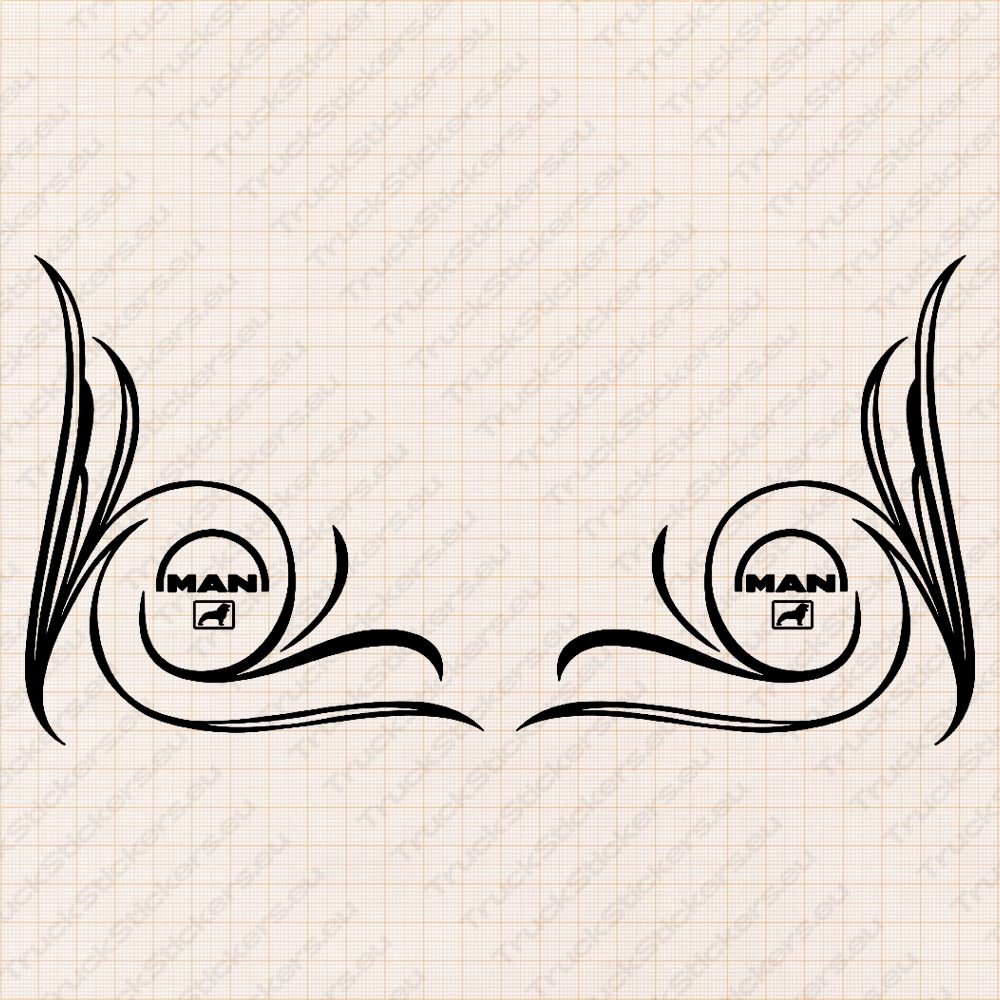 Man Autocollants de Vitre de Camion 90676 – Logo Classique Avec Lion Et Graphiques En Tourbillon – Ensemble de 2