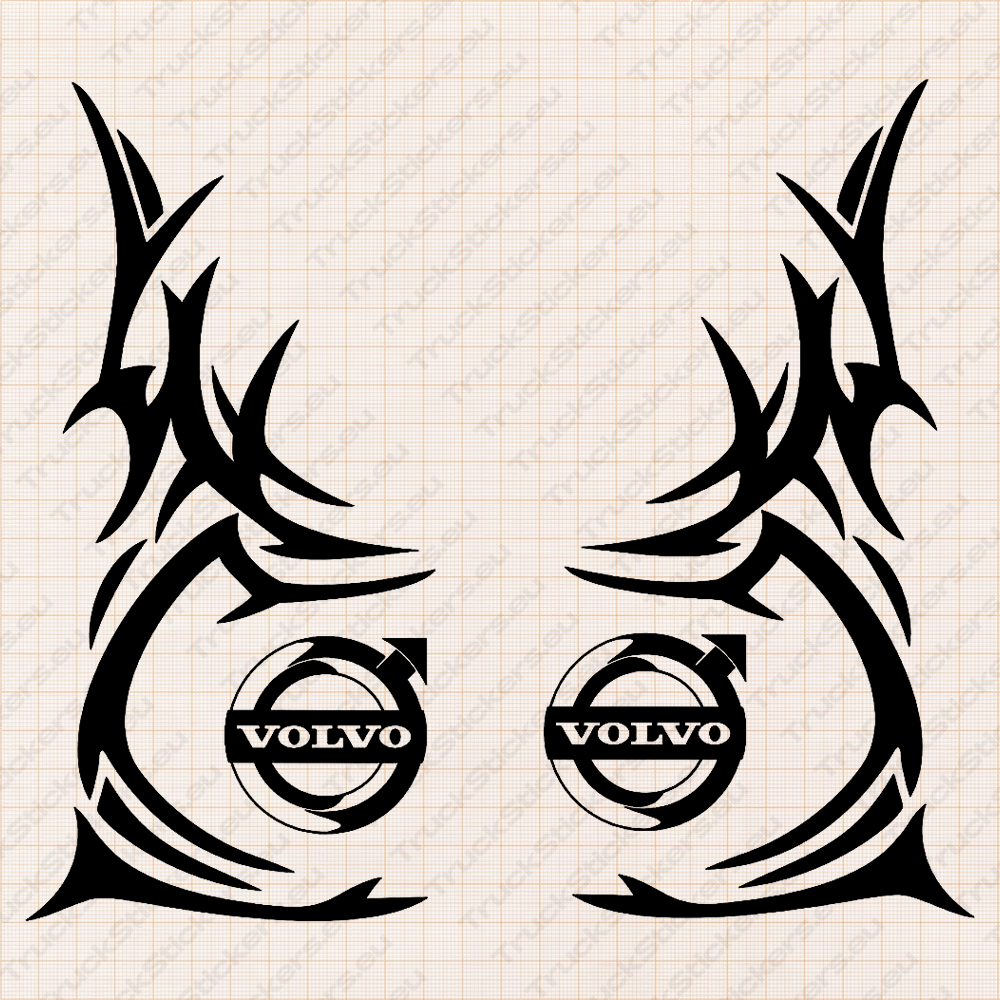 Volvo Autocollants de Vitre de Camion 90471 – Logo Classique Avec Graphiques Tribaux Verticaux – Ensemble de 2