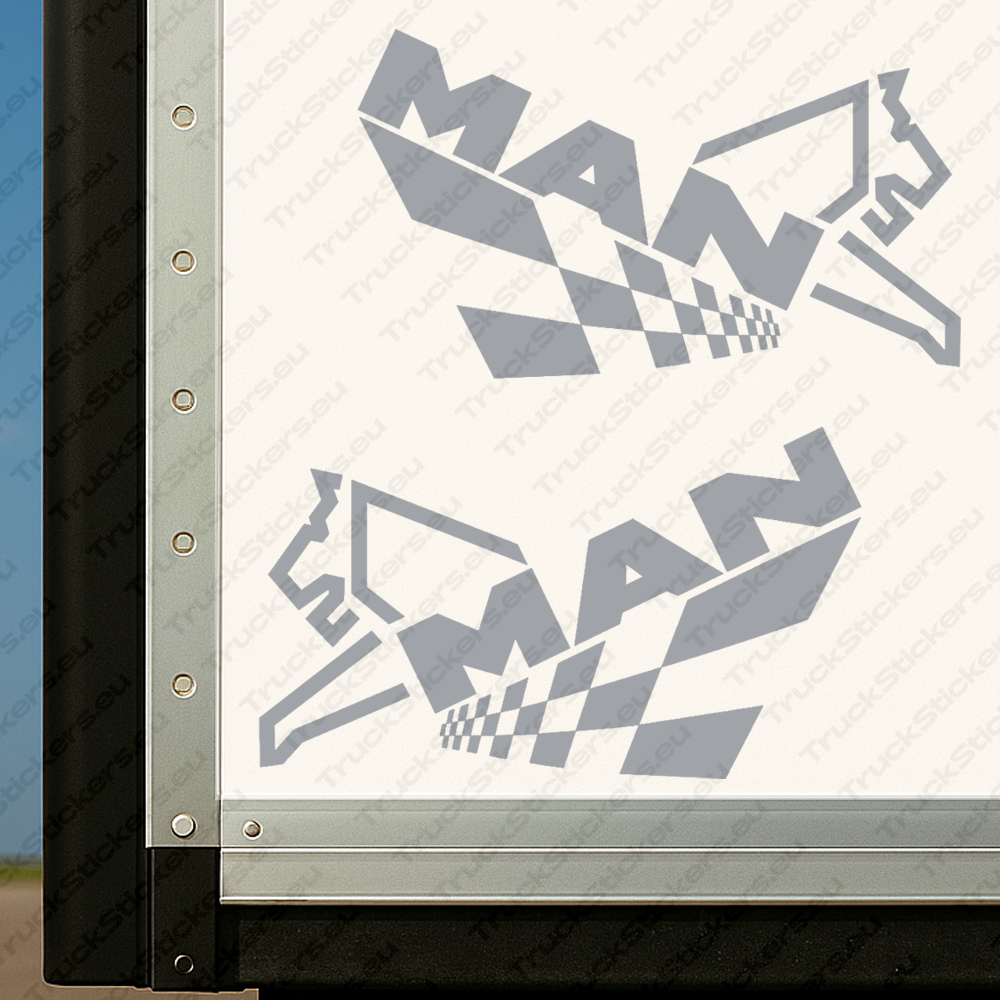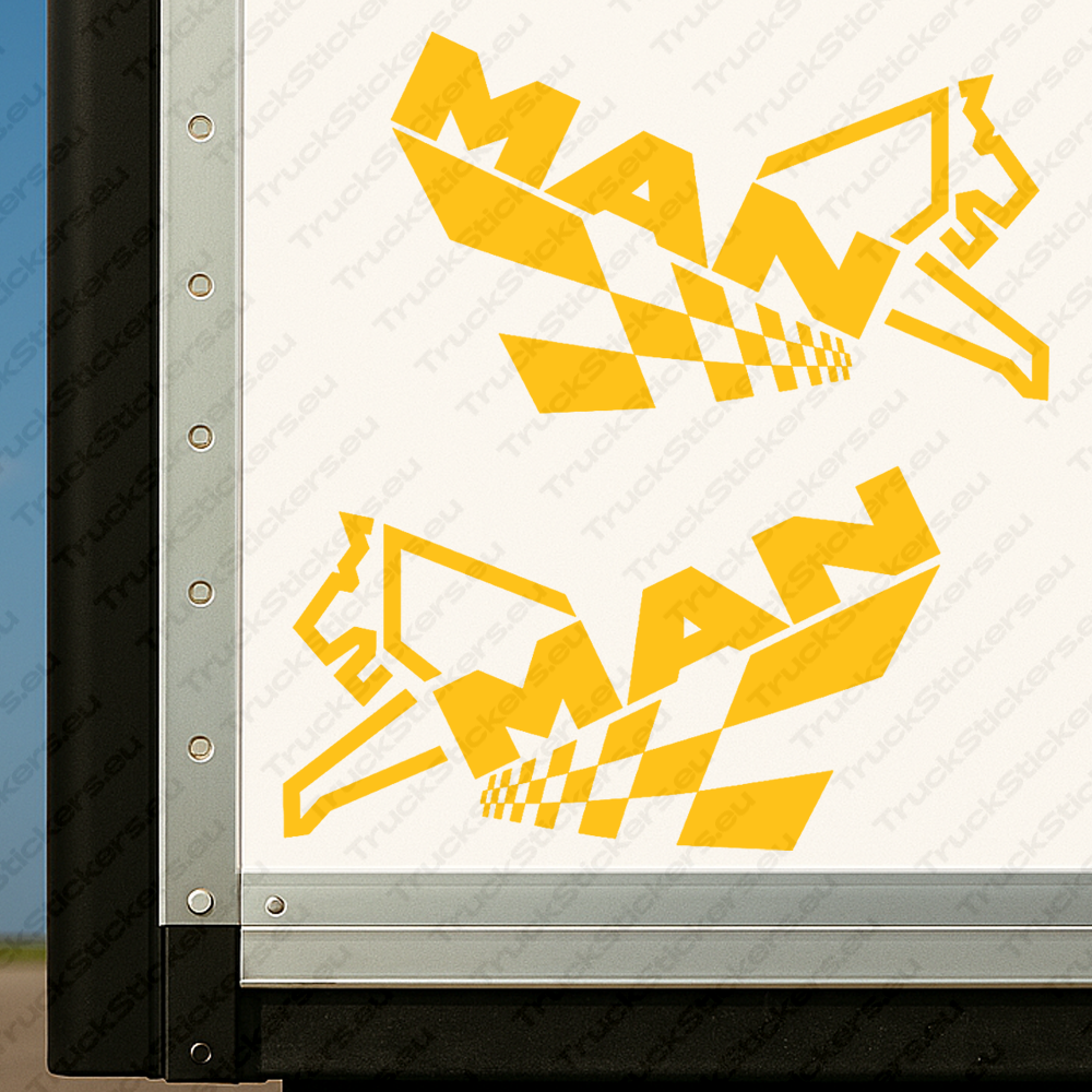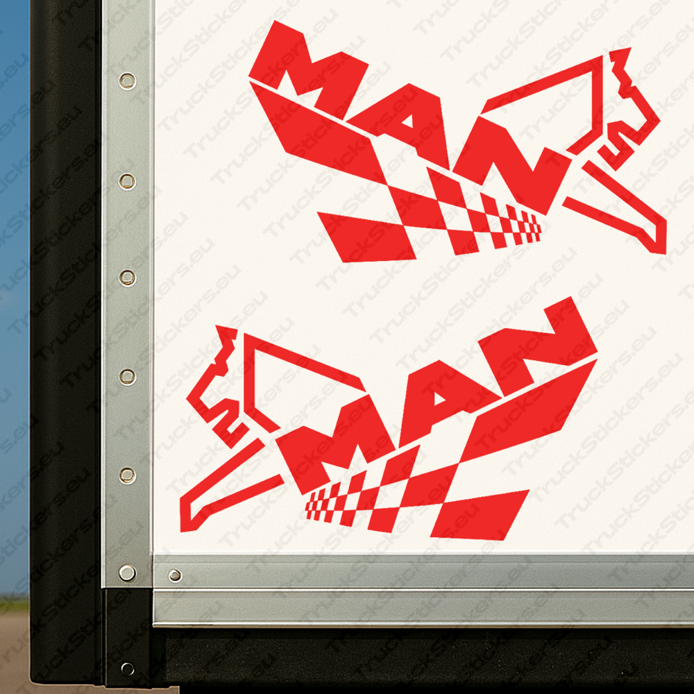 Man Naljepnice Za Karoseriju Kamiona 90696 – Moderna Verzija Loga S Lavom I Uzorkom Šahovske Zastave – Set Od 2