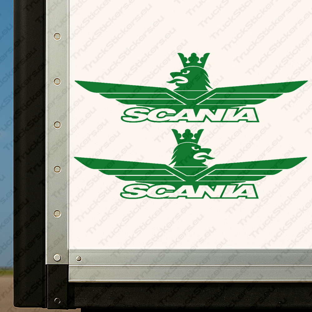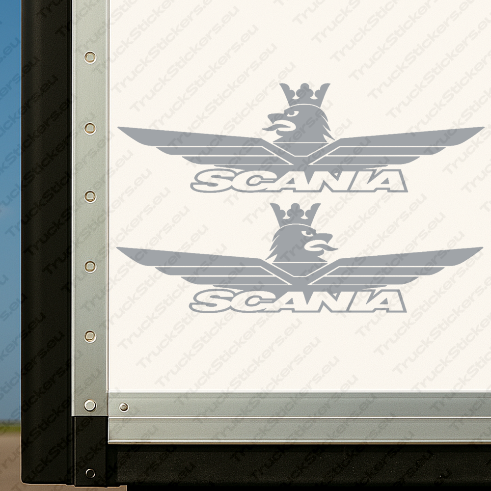 Scania Naljepnice Za Karoseriju Kamiona 90152 – Minimalistički Grifon S Krilima I Kurzivnim Tekstualnim Logotipom – Set Od 2