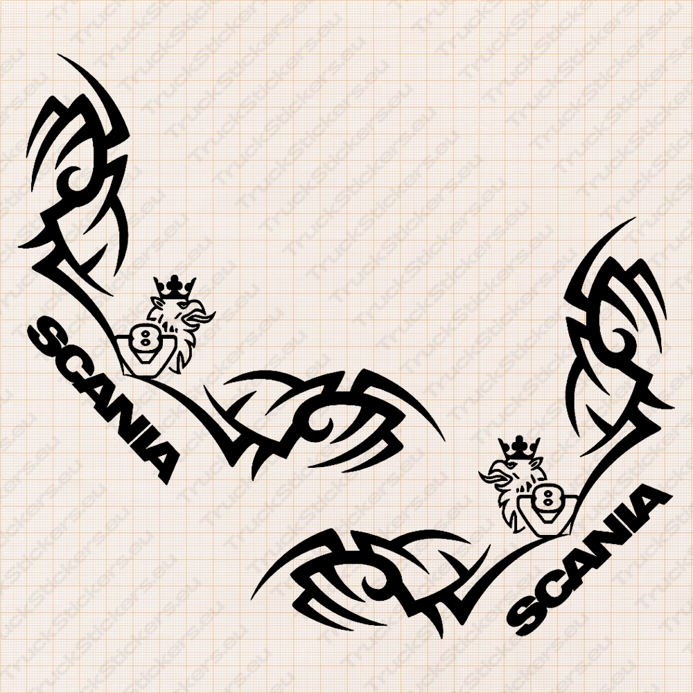 Scania Vrachtwagen Raamstickers 90225 – Tekstlogo Met V8, Griffin En Dynamische Golf Graphics – Set Van 2