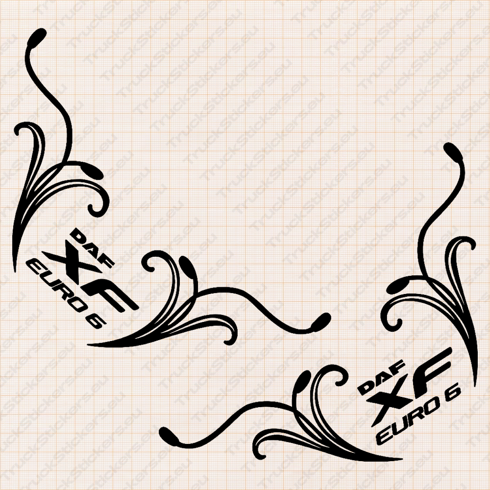 Daf Truck Window Stickers 90616 – XF Euro 6 with Logo and Flourish Graphics – Set of 2