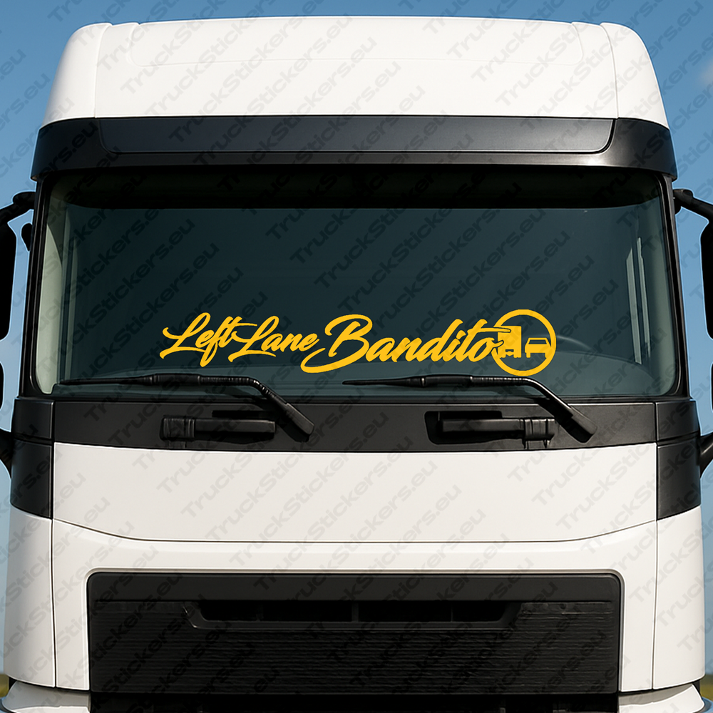 Transform your truck with the Left Lane Bandito Truck Windshield Sticker 95119-2 (115x19cm) — a premium windshield sticker built for professional use and tough outdoor conditions. Made from MACtac MaCal 9300 Polymeric Vinyl, it delivers long-lasting strength, vibrant color, and a sleek finish that withstands everyday driving challenges.