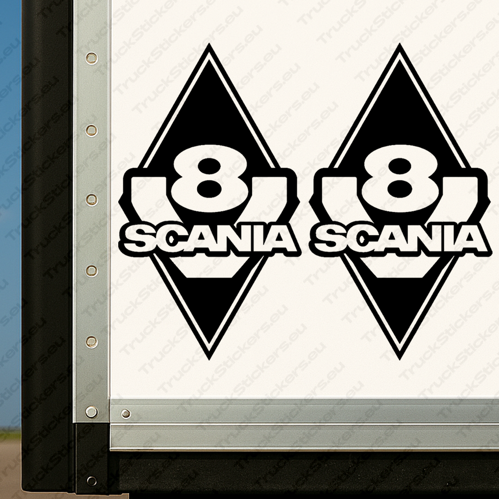 Scania Truck Body Stickers 90233 – Rhombus with V8 and Text Logo – Set of 2