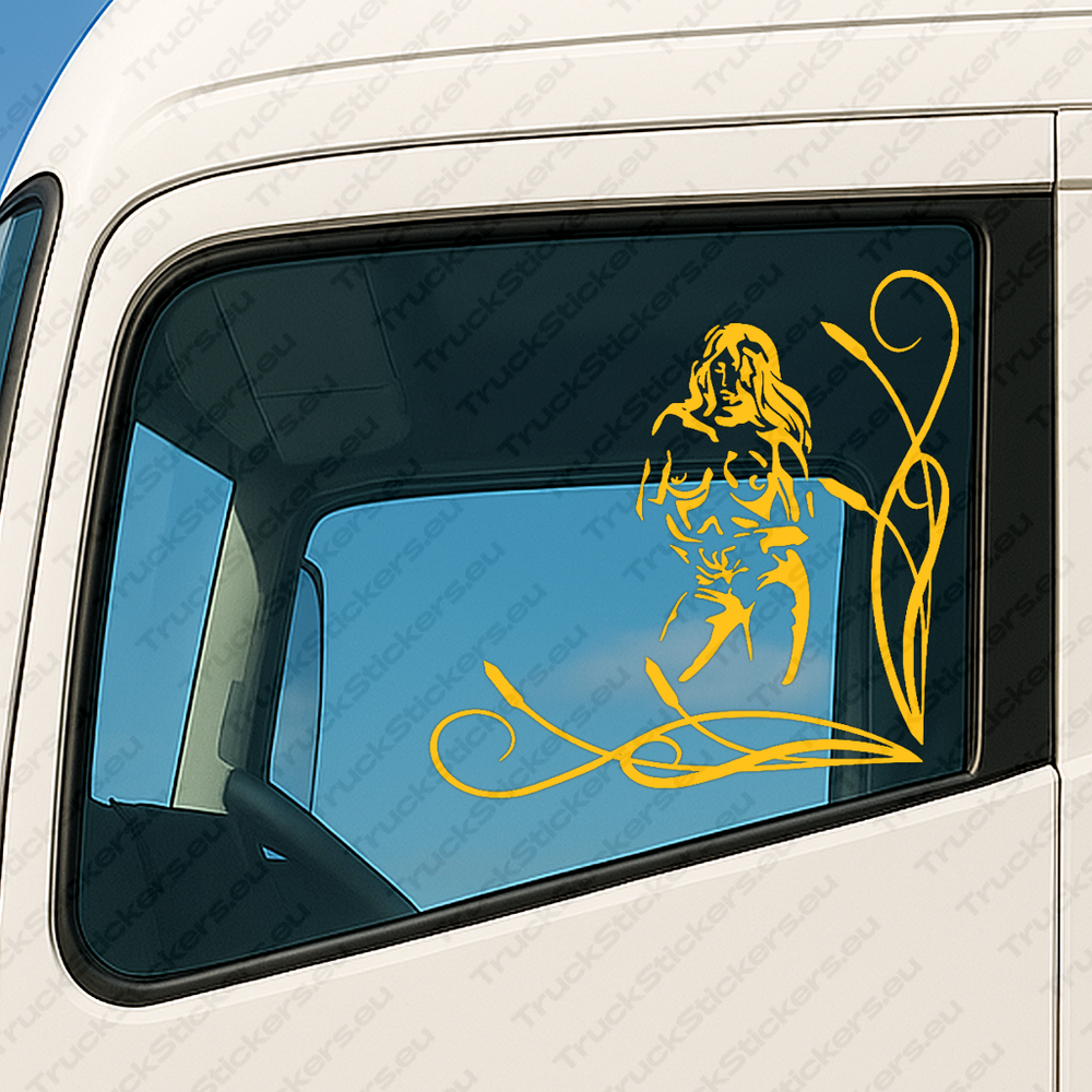 Enhance your truck with the Women Truck Window Stickers 90215 Version 2 - Set of 2, a high-quality decal made for trucks and outdoor automotive use. Crafted from MACtac MaCal 9300 Polymeric Vinyl, it delivers exceptional durability, deep color, and a clean, professional finish that resists daily wear.