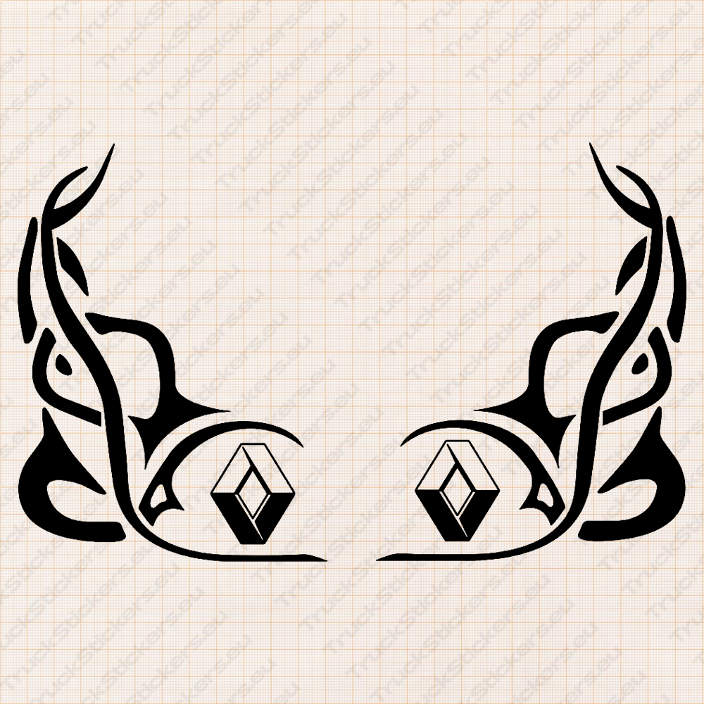Renault Adesivos para Vidros de Caminhão 90805 – Logotipo Clássico Sem Texto Com Gráficos Tribais Verticais – Conjunto De 2