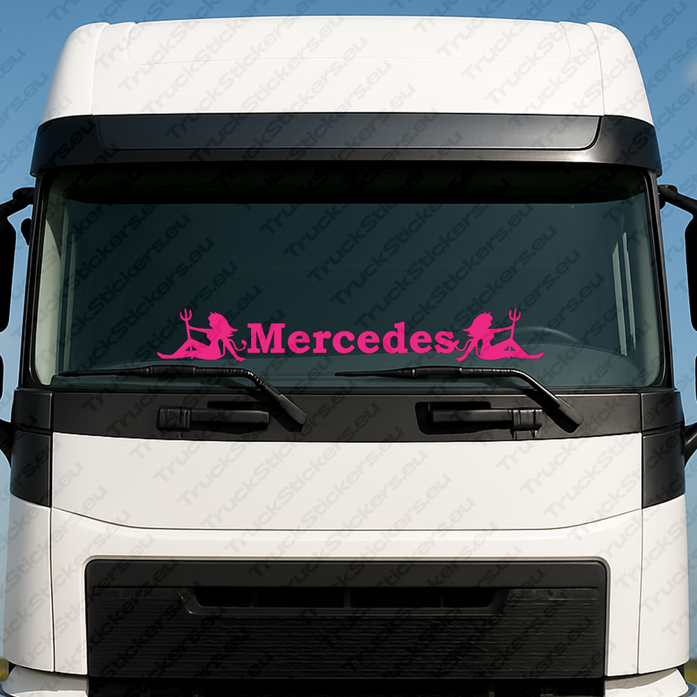 Mercedes Autocolante Parbriz Camion 90713-1 – Logo Text Clasic Cu Femei Ținând Un Trident (115X15Cm)
