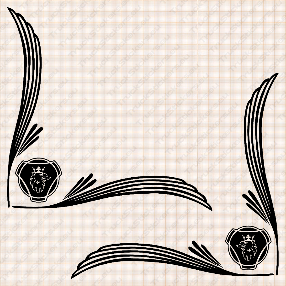 Scania Autocolante Pentru Geamuri de Camion 90204 – Badge Cu Grifon Și Grafica Flourish – Set De 2