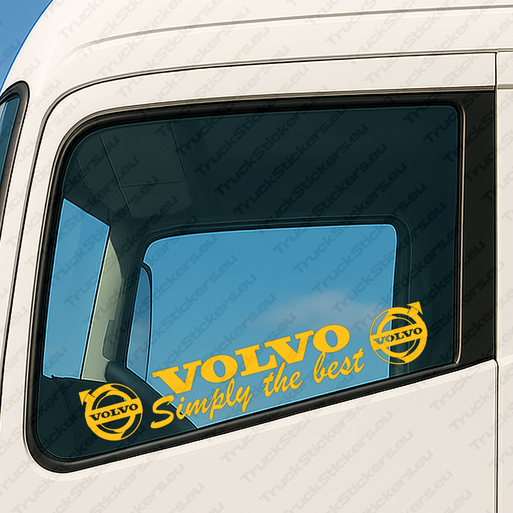 Izboljšajte videz svojega tovornjaka z Volvo Nalepke za Okna Tovornjakov 90437 - Simply The Best Z Besedilom In Klasičnimi Logotipi - Komplet 2 kosov — visokokakovostno nalepko, zasnovano posebej za tovornjake in zunanjo avtomobilsko uporabo. Izdelana iz MACtac MaCal 9300 polimerni vinil, ponuja izjemno vzdržljivost, živahne barve in čist, profesionalen videz, odporen na vsakodnevno uporabo in vremenske vplive.